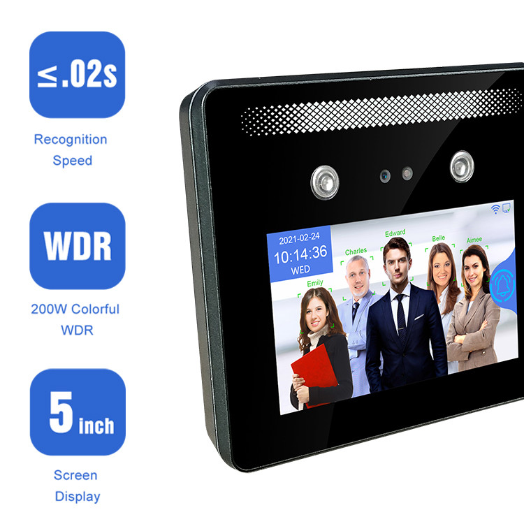 5 นิ้ว Face Recognition เครื่องเข้าร่วมประชุม Biomtric เวลาบันทึก