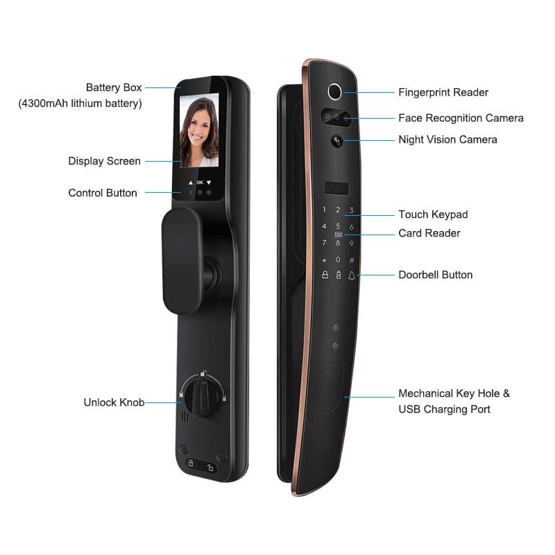 Tuya App 3D Face Digital RFID ลายนิ้วมือล็อคประตู Smart Lock