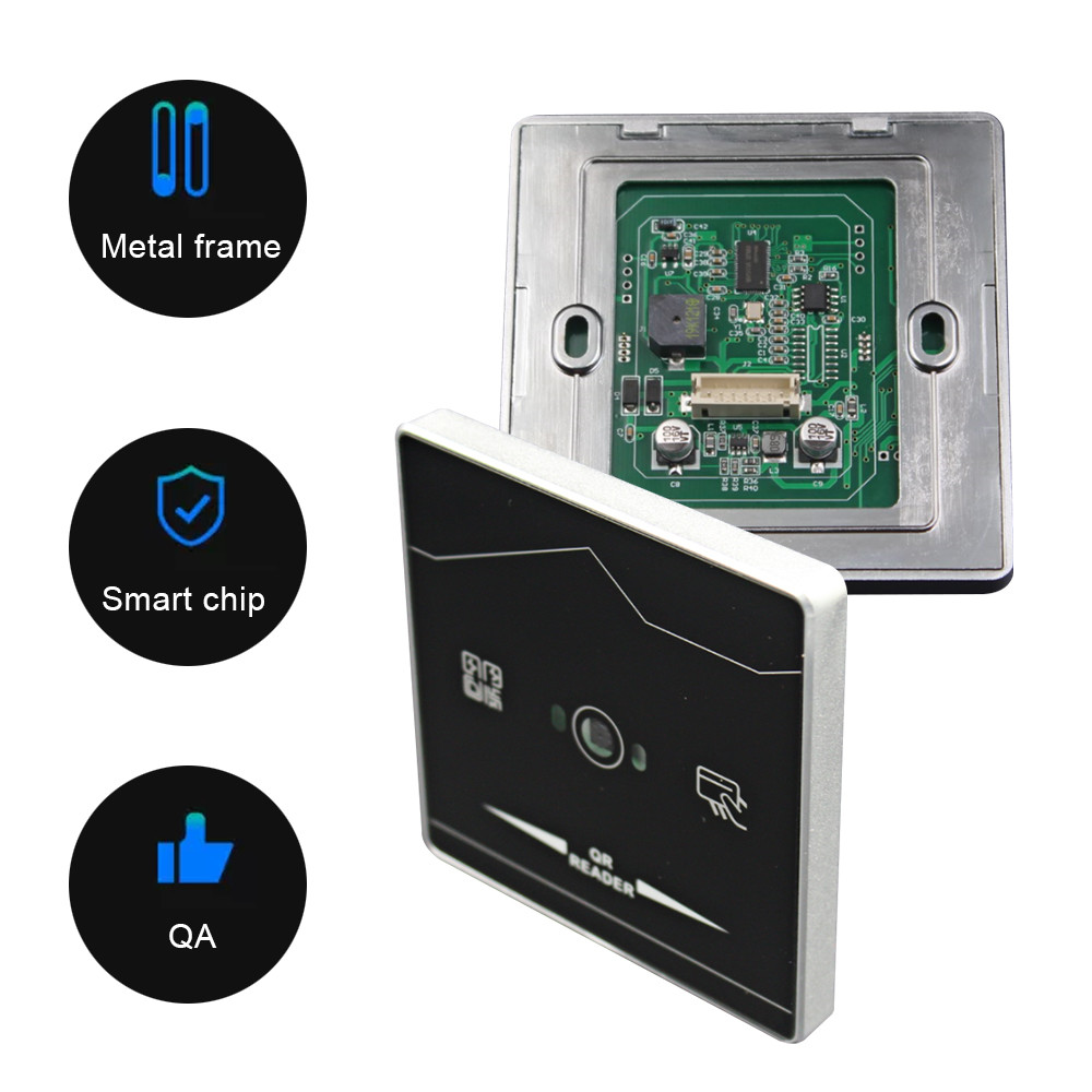 Q1 RFID Card & QR Code reader มาพร้อมกับกล่องโลหะซึ่งสามารถรับประกันคุณภาพสูงขนาดของมันคือขนาดมาตรฐาน 86มันสามารถอ่านบัตรประจำตัวประชาชน (IC Optional) และอ่านบาร์โค้ด/QR Code ได้ ผู้อ่านประเภทนี้สามารถใช้สำหรับการจัดการการเข้าถึงหลายรายการได้เป็นอย่างดี
